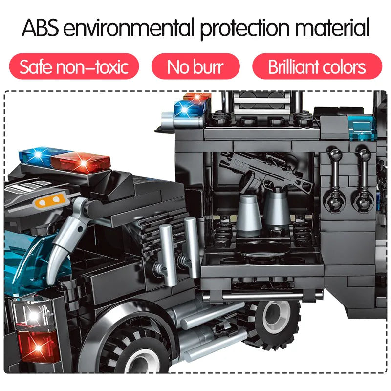The City SWAT Team Building Blocks set is made from environmentally friendly ABS plastic, ensuring the safety and durability of the product. The details and quality of the pieces are top-notch, providing endless hours of fun and creativity for your child.