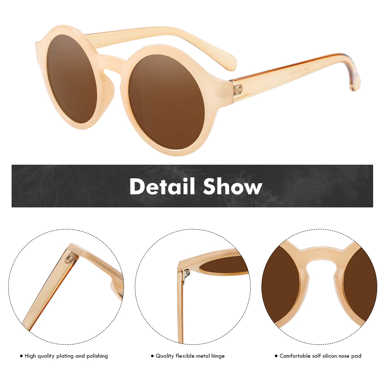 The circular frame and tinted lenses give off a retro vibe, while the sleek design adds a modern twist. The lightweight construction ensures maximum comfort, making them perfect for all-day wear.