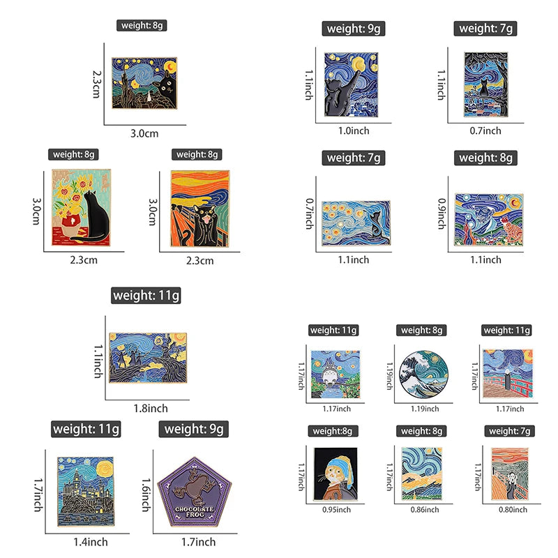 Shop now and add a touch of creativity to your style with our Fun Van Gogh Oil Painting Enamel Pins. Each purchase supports independent artists and helps keep the spirit of Van Gogh's art alive.