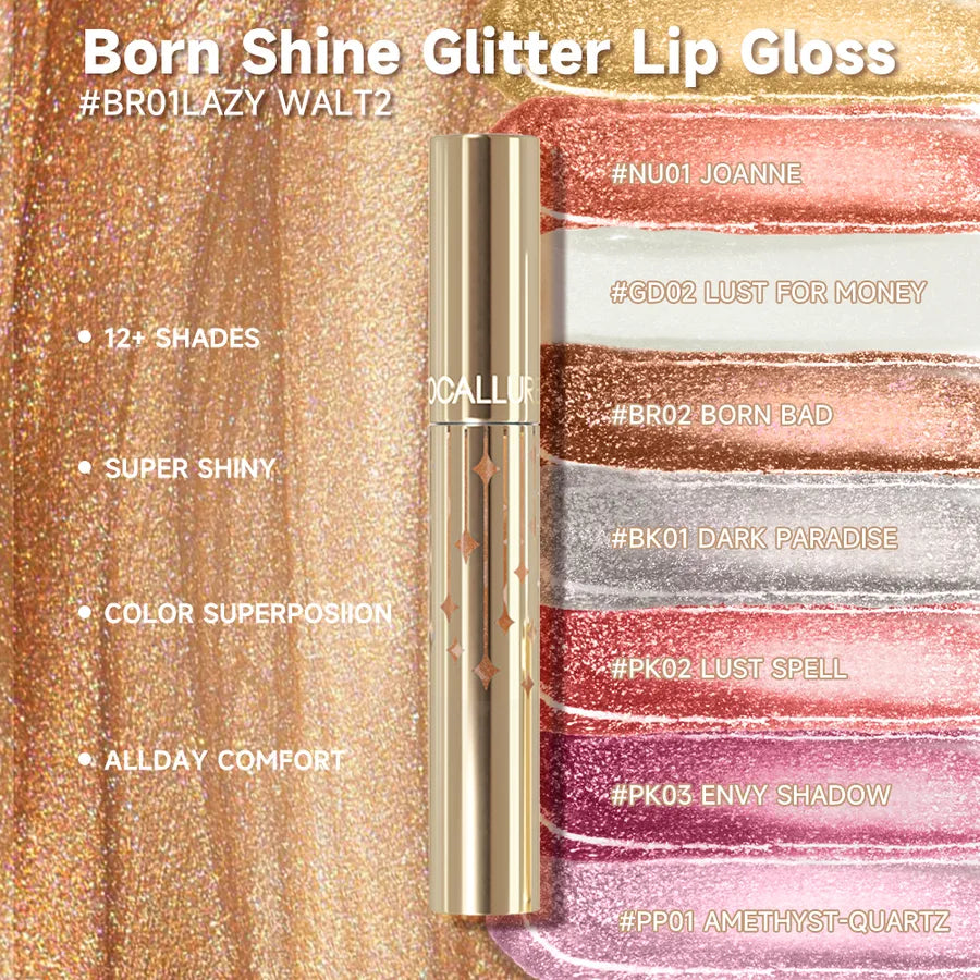 Achieve a glamorous and long-lasting lip look with our Glitter Lip Glosses Waterproof. This luxurious lip color delivers ethereally erotic color with the surreally seductive shine of a glossy balm. The formula is super shiny, providing a fuller and smoother appearance with just one swipe.