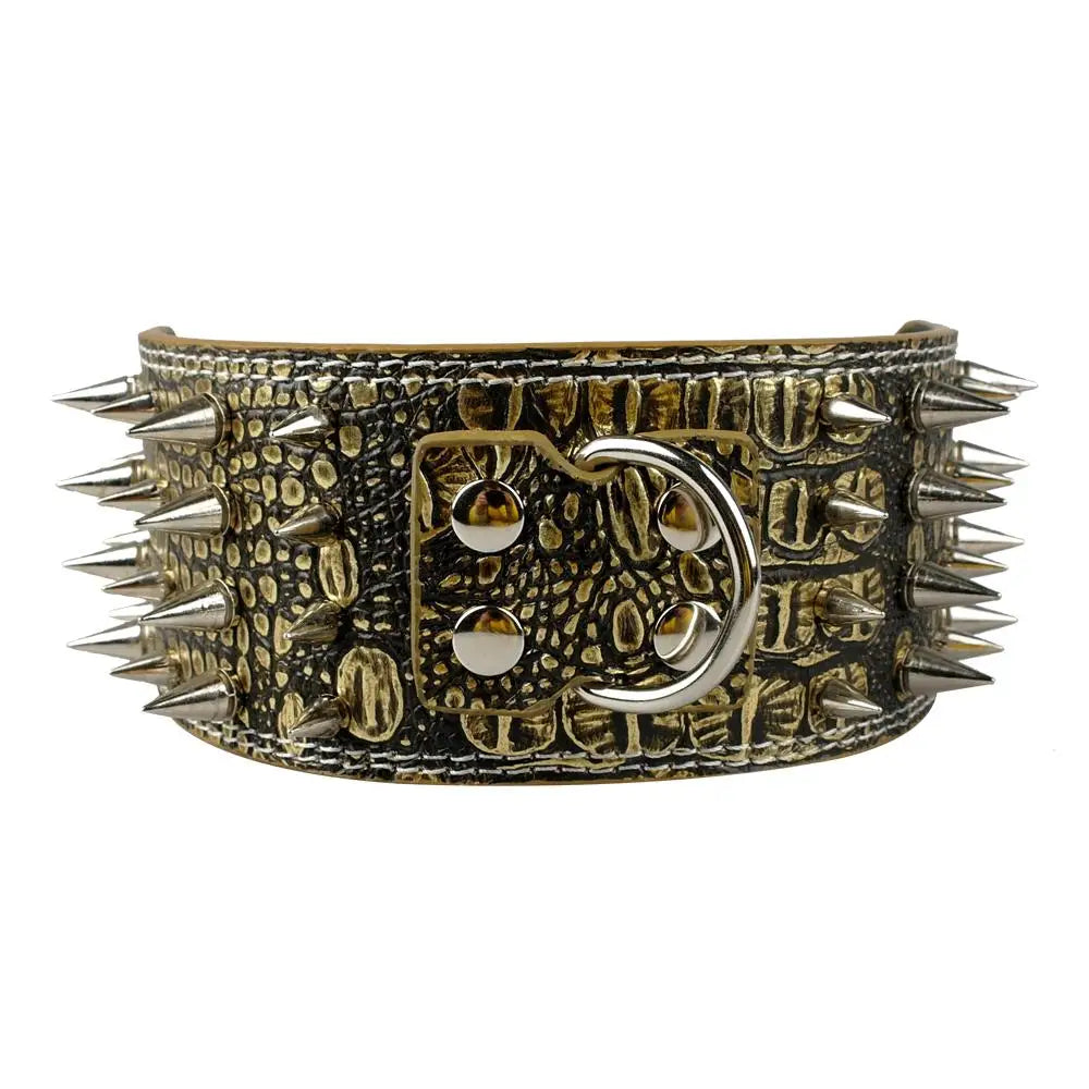 Introducing our high-quality Leather Pet Dog Collar, perfect for your furry friend. Made with 3 inch (7.5cm) wide sharp spikes studded soft pu leather, this collar is both stylish and durable. We guarantee 100% quality with every purchase.