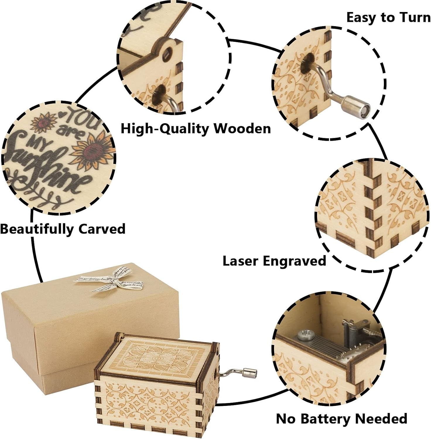 Introducing our "You Are My Sunshine Music Box" – a delightful fusion of craftsmanship and sentimentality that transforms into the perfect gift for any occasion! This unique set combines a charming wooden hand-crank music box with a radiant sunflower necklace, ensuring a one-of-a-kind surprise for birthdays, weddings, Mother's Day, Christmas, anniversaries, Valentine's Day, Halloween, and beyond.